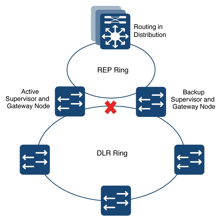 DLR supports redundant gateways for connecting with network infrastructure outside of the DLR network. The DLR redundant gateway feature provides mechanisms for automatically or manually selecting an active gateway. It also provides for automatic switchover to a backup gateway in the event of a connection failure.