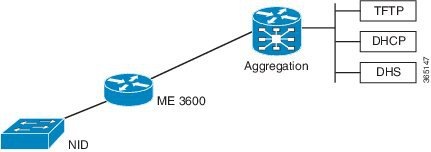 In this deployment, while Cisco ME 1200 NID-1 receives VLAN through LLDP-MED Network Policy TLV and initiates DHCP Discovery, the Cisco ME 1200 NIDs that are downstream to Cisco ME 1200 NID-1 do not receive LLDP-MED TLVs. This is because LLDP-MED TLVs are sent only between endpoint devices and are not propagated beyond Cisco ME 1200 NID-1.