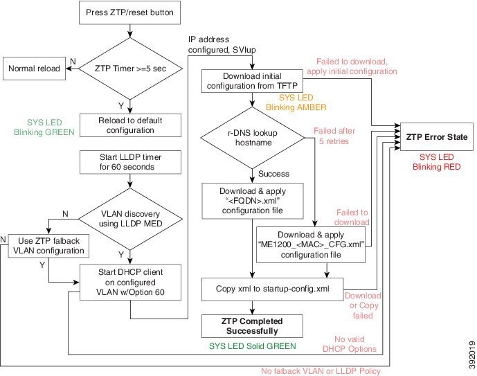 Pressing the ZTP reset button triggers a series of steps that result in provisioning the Cisco ME 1200 NID with a complete, operational configuration.