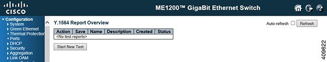 To execute a Y.1564 test, a set of Y.1564-specific configuration along with information about which EVC or ECE to test is needed. The Y.1564-specific configuration is independent of the EVC/ECE to test, and is called a profile. The profile can be used multiple times as input configuration to test EVCs/ECEs as they are created. The result of executing a profile is called a report. Up to 16 profiles and 10 reports can be stored on the switch.