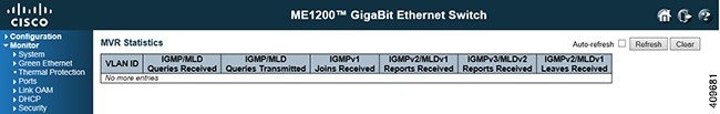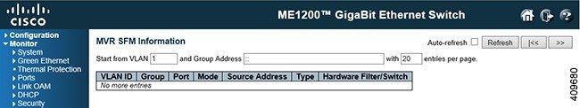 The MVR feature available on the ME 1200 Web GUI allows you to monitor the MVR Channels and view the MVR SFM Information Table.
