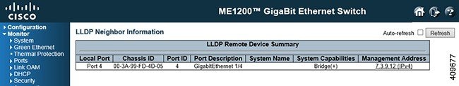 The LLDP feature available on the ME 1200 Web GUI allows you to monitor the LLDP parameters, LLDP port, and LLDP Media.
