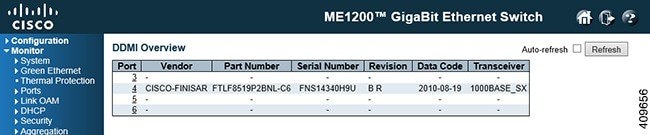 The DDMI feature available on the ME 1200 Web GUI allows you to monitor the DDMI information for the ME 1200 switch.