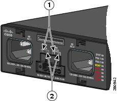 This procedure is for installing an DC-power-supply module into the PSU 1 power-supply slot. Repeat these steps to install a power-supply module in the PSU 2 power-supply slot.