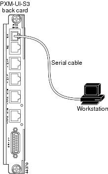 Physically connect a terminal or workstation to the PXM45 UI-S3 back card as shown in Figure 2-1.
