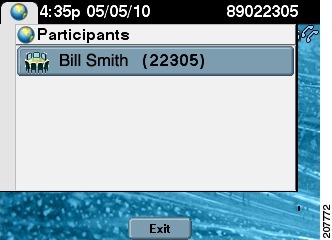 Participant List (conference roster list and roster list with audio add-in), as shown in Figure 5-3—Provides users with a list of participants in a meeting. For scheduled meetings, the list also includes invited but yet to attend participants. The participant list is read-only and can be found on the control device of the CTS endpoint only in multipoint calls.