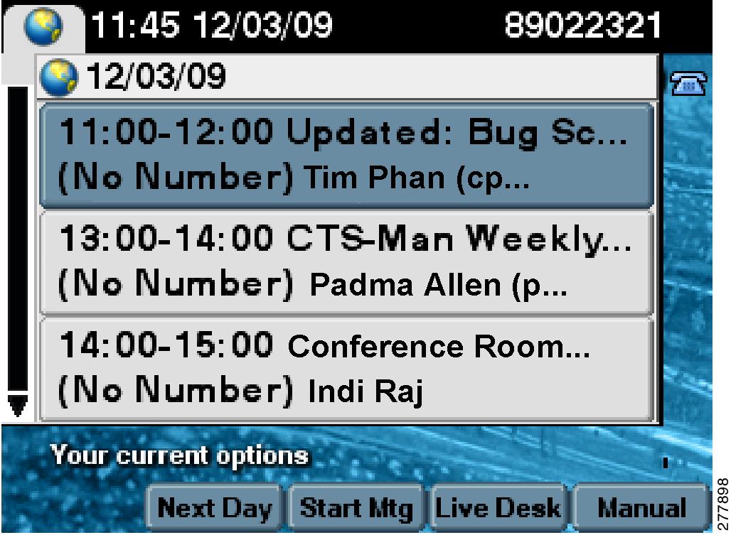 The Meetings screen shows upcoming meetings that have been scheduled on your Cisco TelePresence System (CTS) endpoint.
