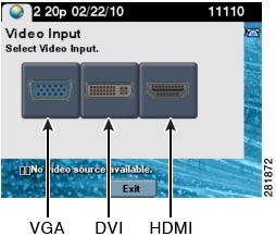 To share presentations on the CTS 500-32, a new DVI input option is available and presentation video source changes can be made using the phone. Touch the Video Input softkey to begin (see Figure 5-6).