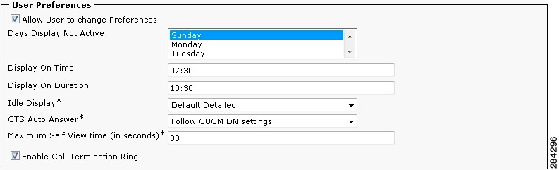 Tip Only two preferences are allowed to be changed by the user on the Cisco TelePresence Touch 12 when you check the “Allow User to change Preferences” box: Auto Answer (on or off) and Ringtone.