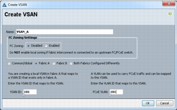 VLAN Name VLAN Purpose ID used in this document FCoE-A Fabric A traffic 101 FCoE-B Fabric B traffic 102