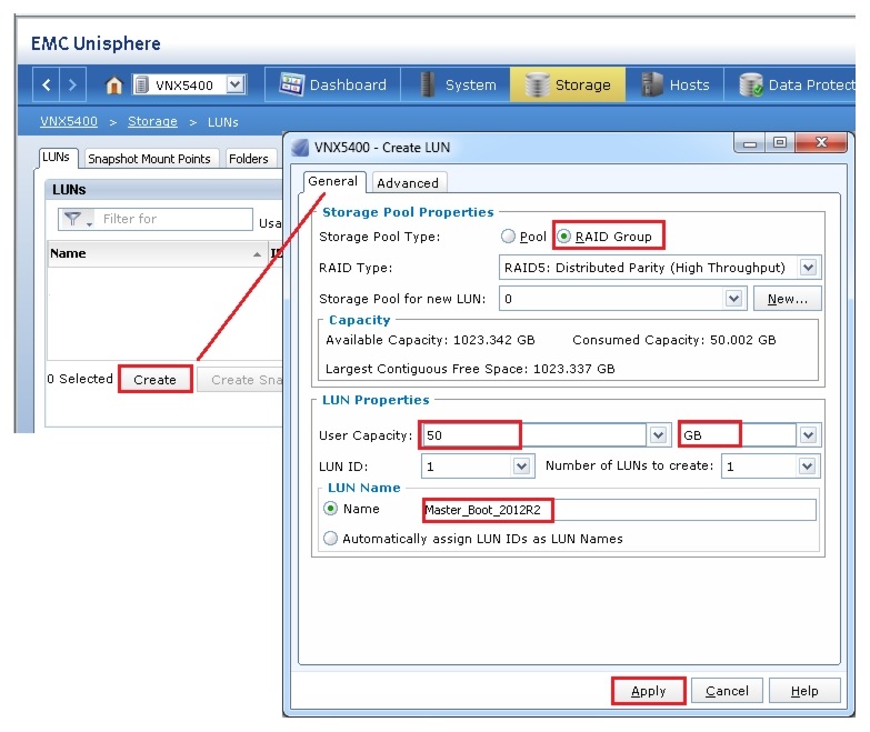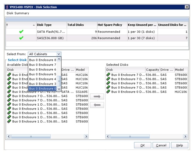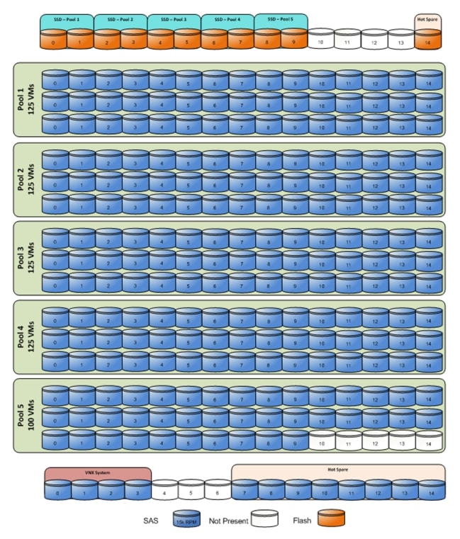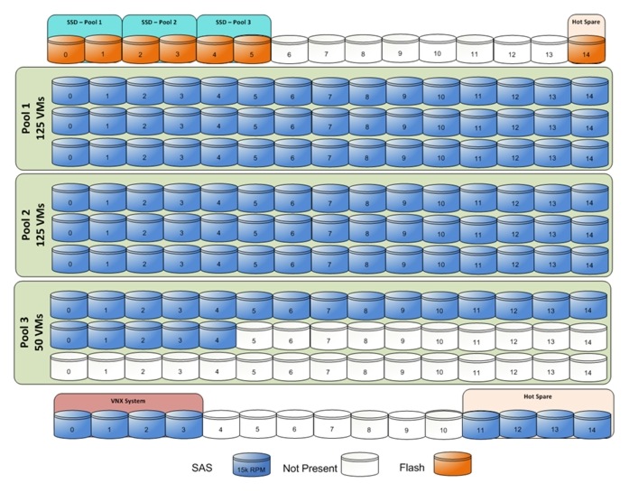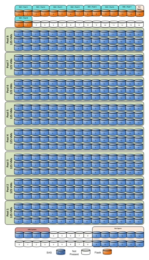 EMC VNX5400 (300 VMs), VNX5600 (600 VMs), or VNX5800 (1000) storage array