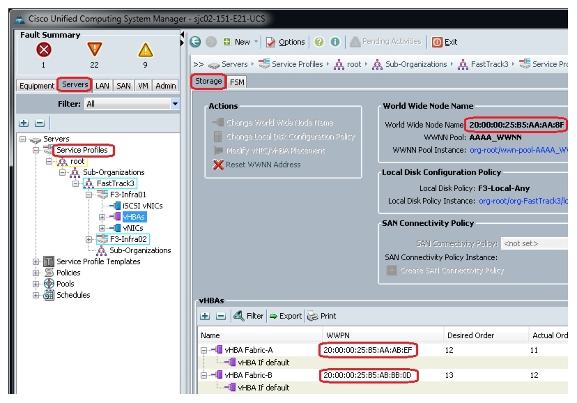 In order to create boot policies, you need to determine the WWNs assigned to the FCoE ports.