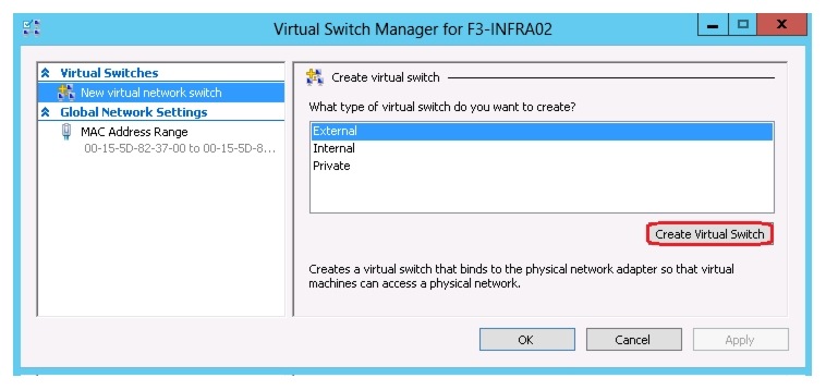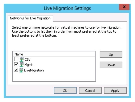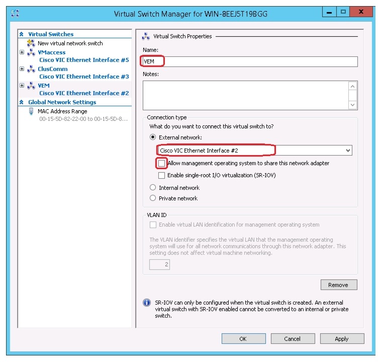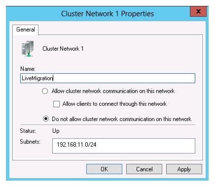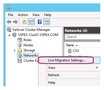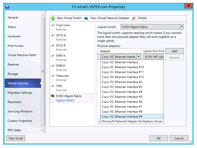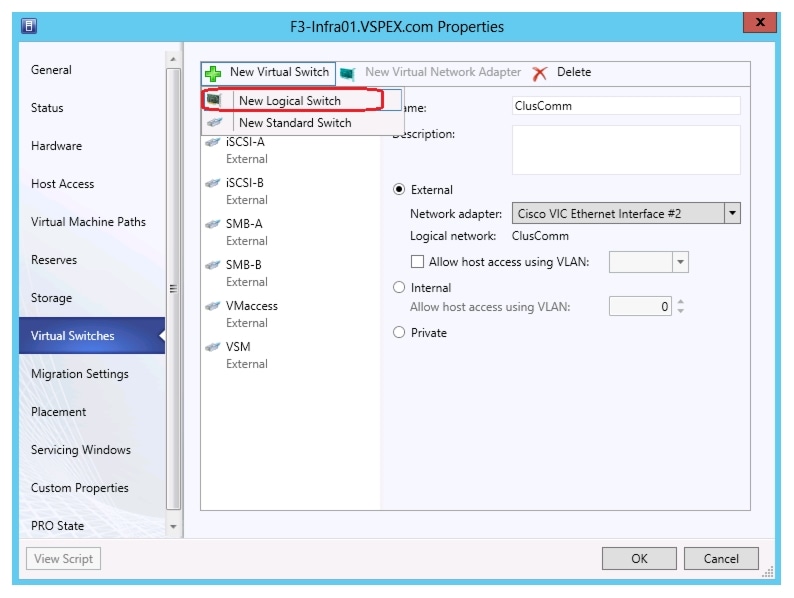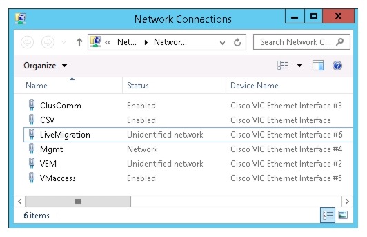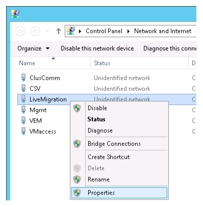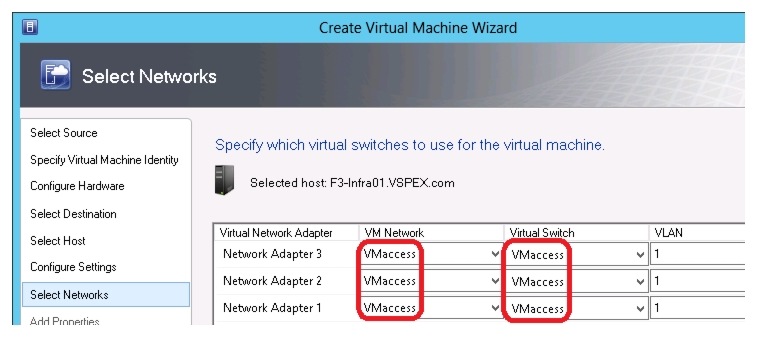 Name Purpose VLAN ID Allowed Subnets Mgmt Infrastructure management LiveMigration Live Migration CSV Cluster Shared Volume VMaccess Virtual Machine access VEM (optional) Nexus 1000V
