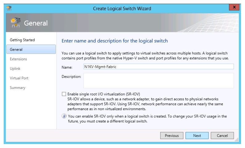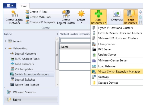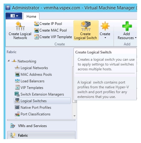 In the VMM console, select Fabric. Under Networking select Logical Switches.