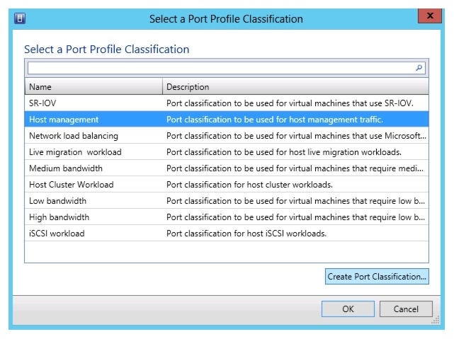 In the Select a Port Profile Classification dialog window, select Host Management.