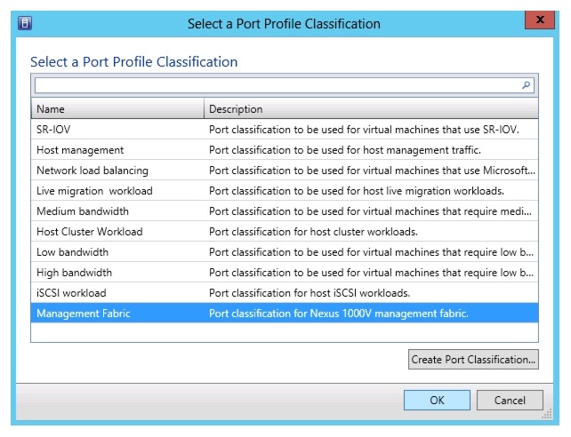 Select Management Fabric from the Classification drop-down list under Virtual Switch.