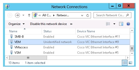 Find the network adapter that will be used for the new logical switch and note the interface number (#9 in the shown screen shot). This is quite likely to be different on each node.