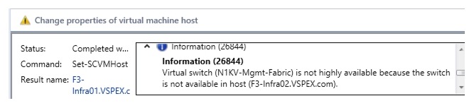 Open the Properties of the cluster and select Virtual Switches to see that the newly created logical switch is available to the cluster.