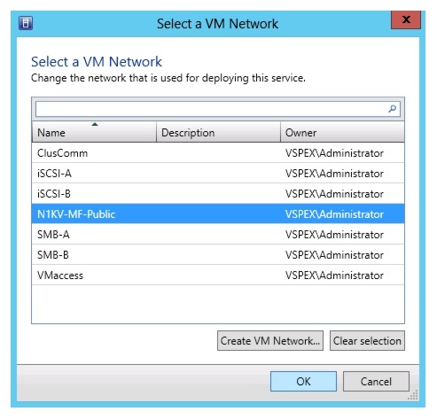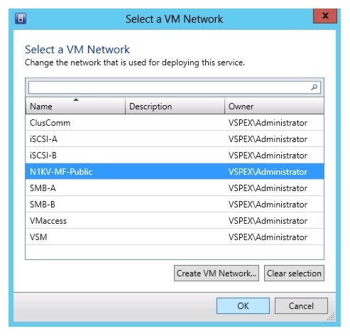In the Select a VM Network dialog window, select the VM network created in the previous steps.