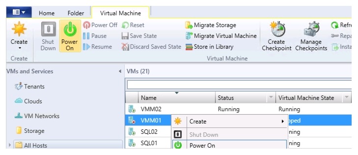 Start the VMM virtual machine by right-clicking on the VM and selecting Power On.