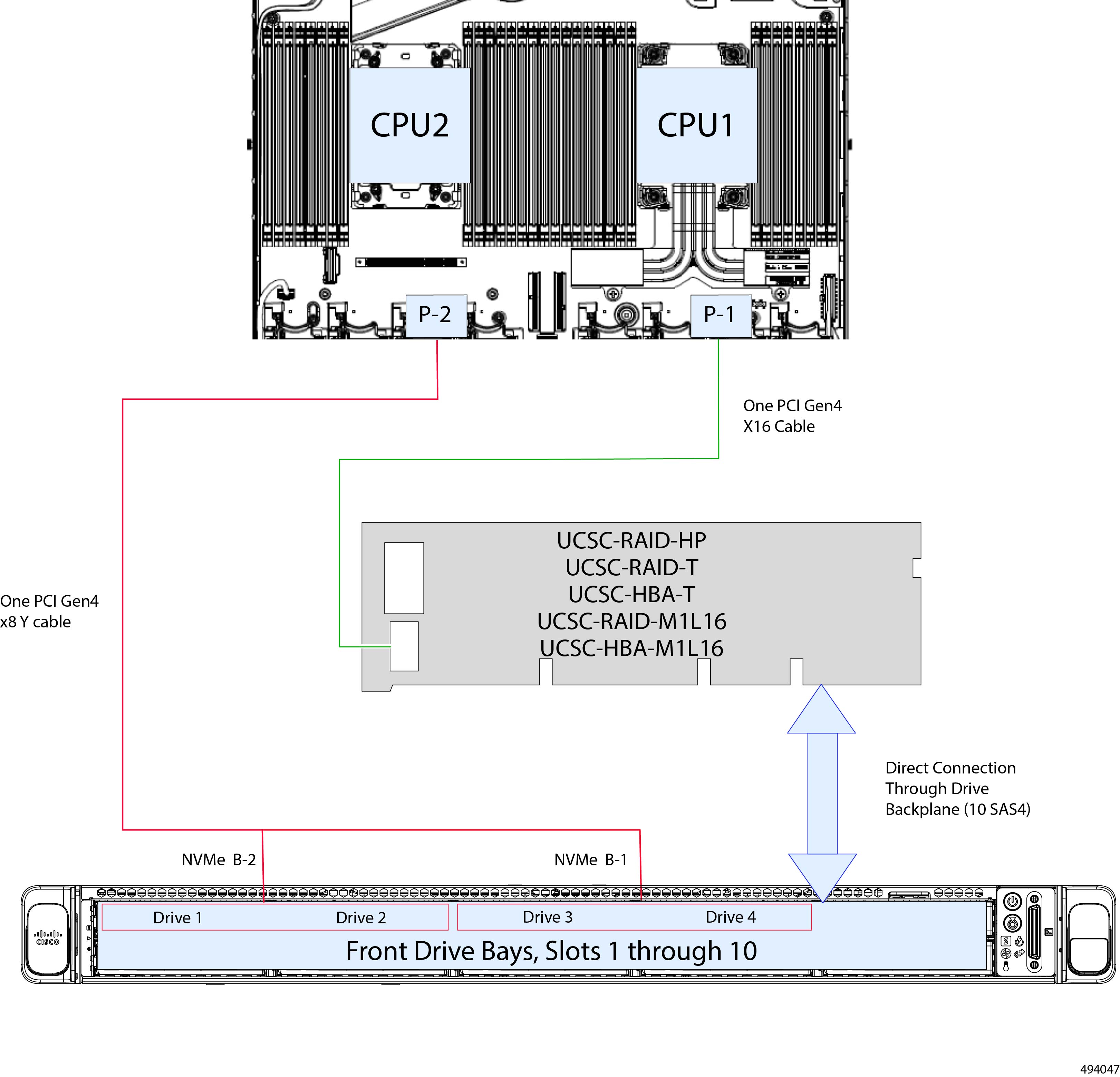 This server supports a single, PCIe-style, SAS RAID or HBA controller that plugs into a dedicated internal riser.