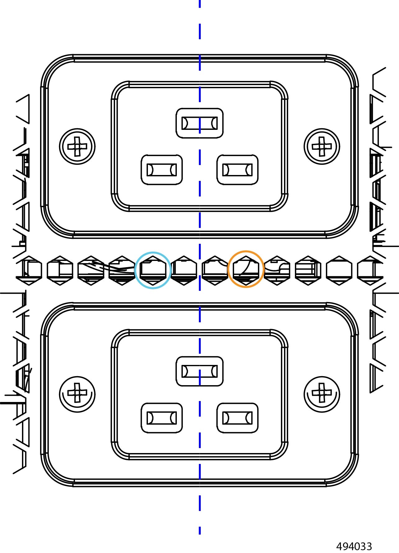 plug, electrical outlet, and the point where the cord extends from the rack.