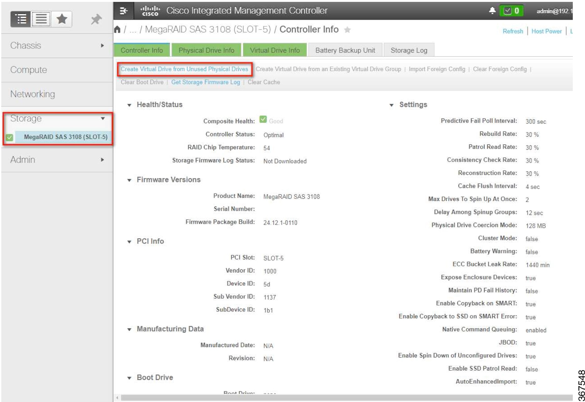In the tabbed menu of the Storage Cards area, click the Virtual Drive Info tab. ![]() |