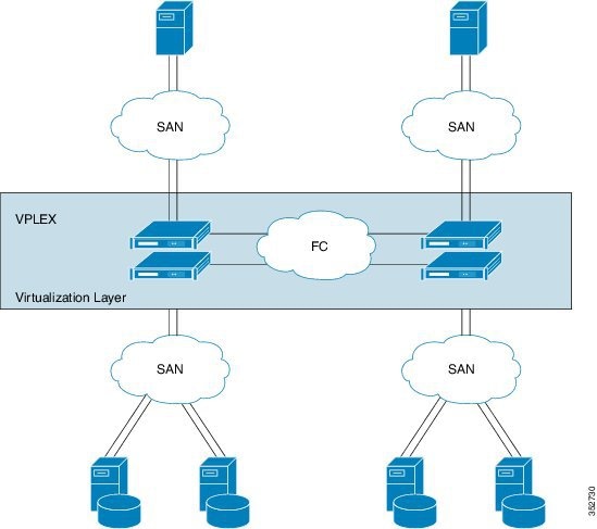 EMC VPLEX encapsulates traditional physical storage array devices and applies three layers of logical abstraction to them. The logical relationships of each layer are shown in the Figure below.