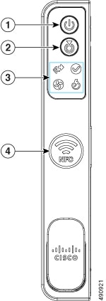 The Cisco UCS XE9305 modular system has the following buttons and chassis health LEDs.