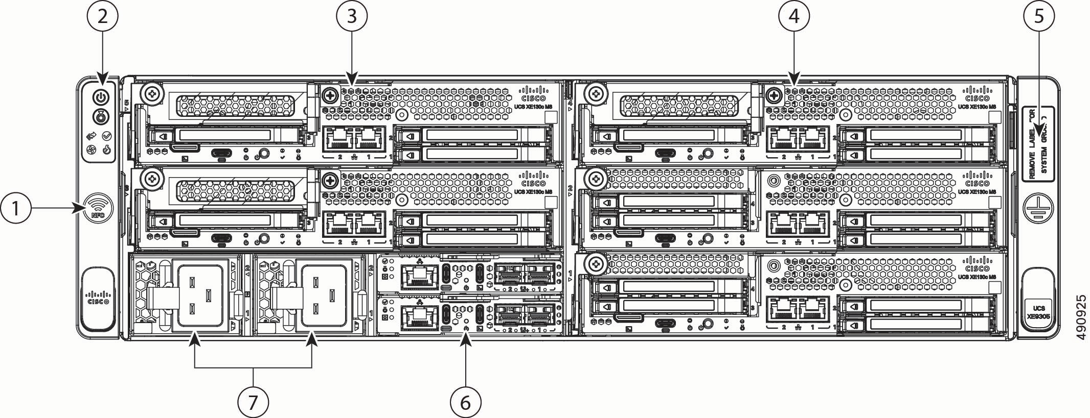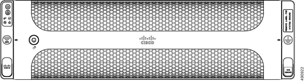 The Cisco UCS XE9305 Modular System supports an optional locking bezel (UCSXE-BEZ-3) that Fattaches to the front panel. The bezel is installed between the chassis front mounting brackets (latches) and prevents access to the compute nodes, PSUs, and cabling.