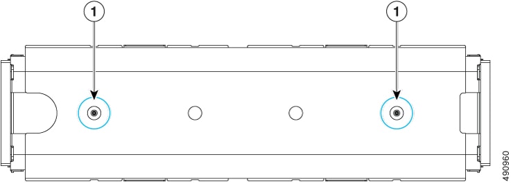 Fan module locking release buttons, two. Both must be pressed to remove the fan module. |