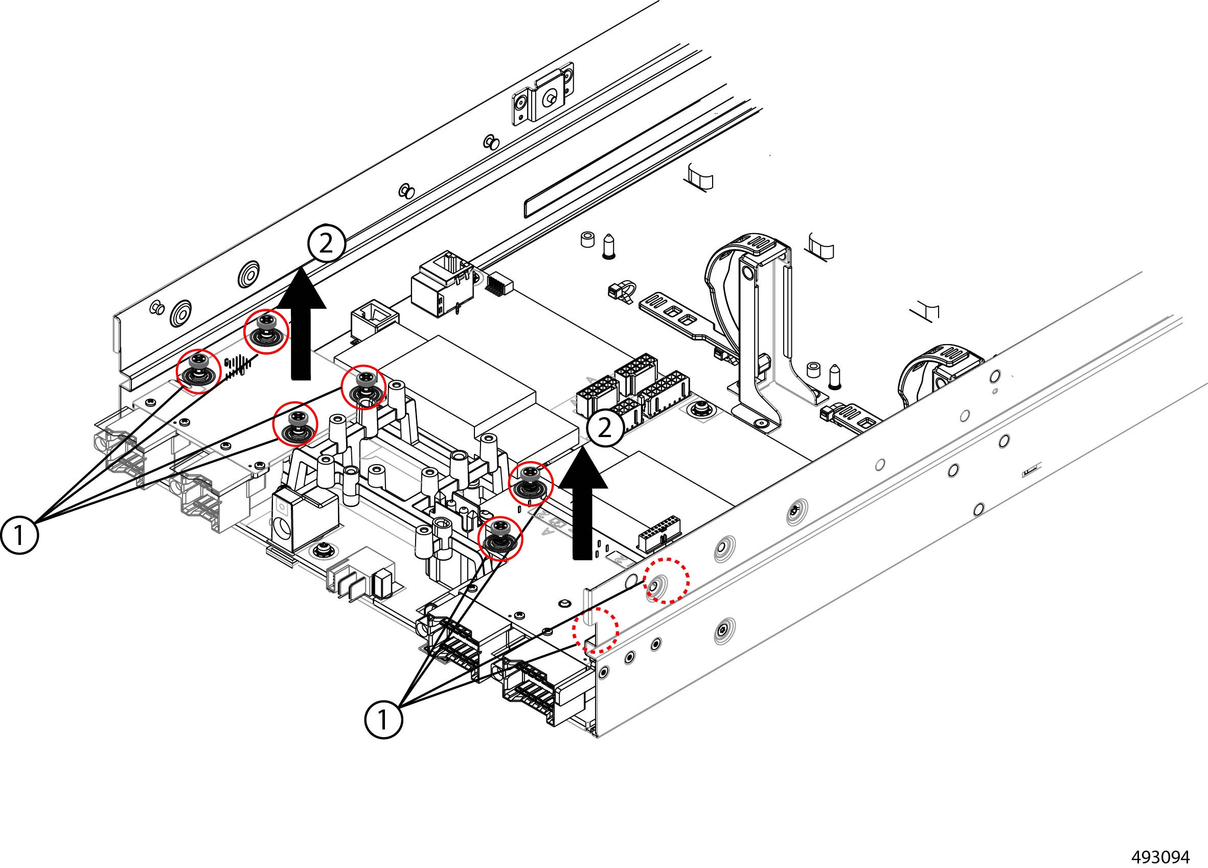 Each Cisco UCS X580p PCIe Node has a PCBA (motherboard) that is connected to sheet metal. You must disconnect the PCBA from the chassis sheet metal to recycle the PCBA. You will need to disassemble and remove additional parts to gain access to the PCBA.