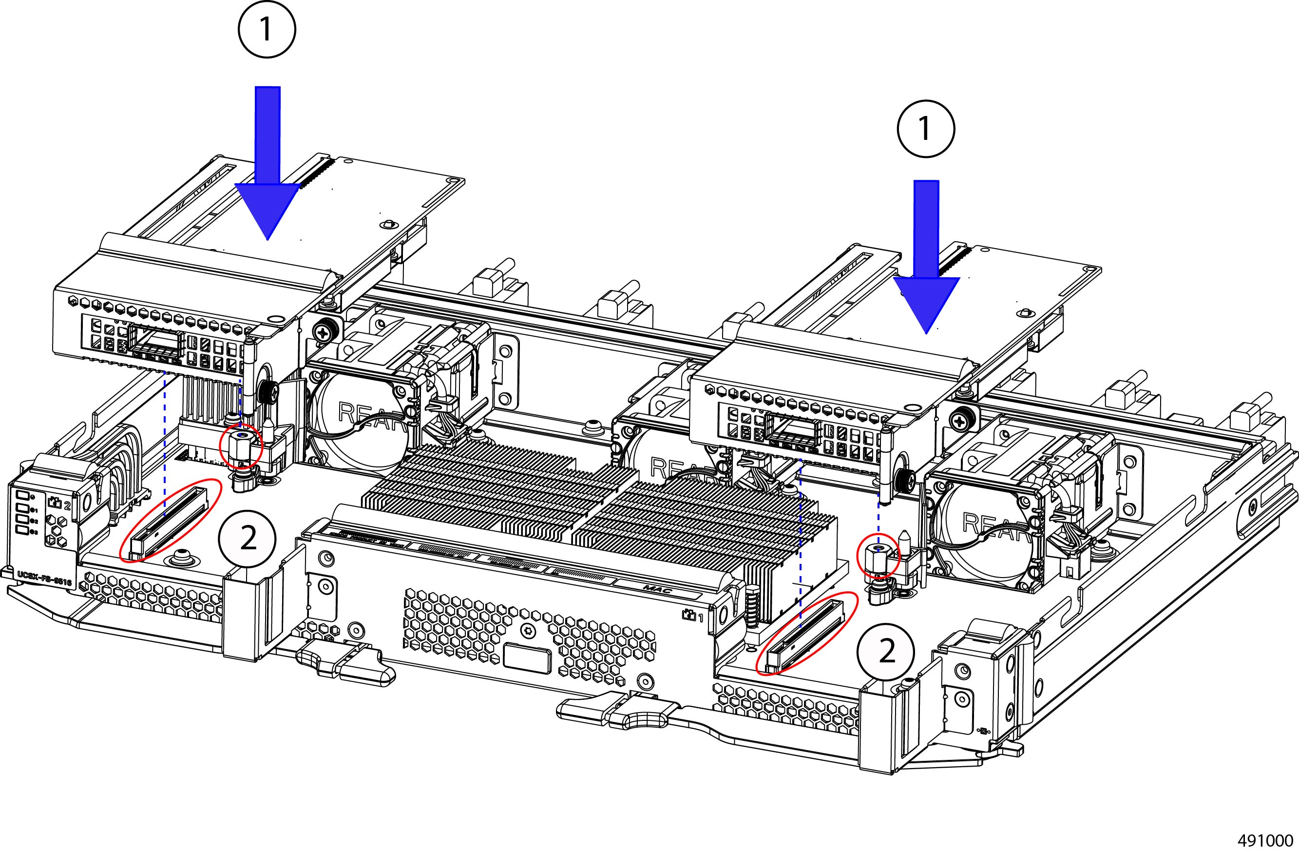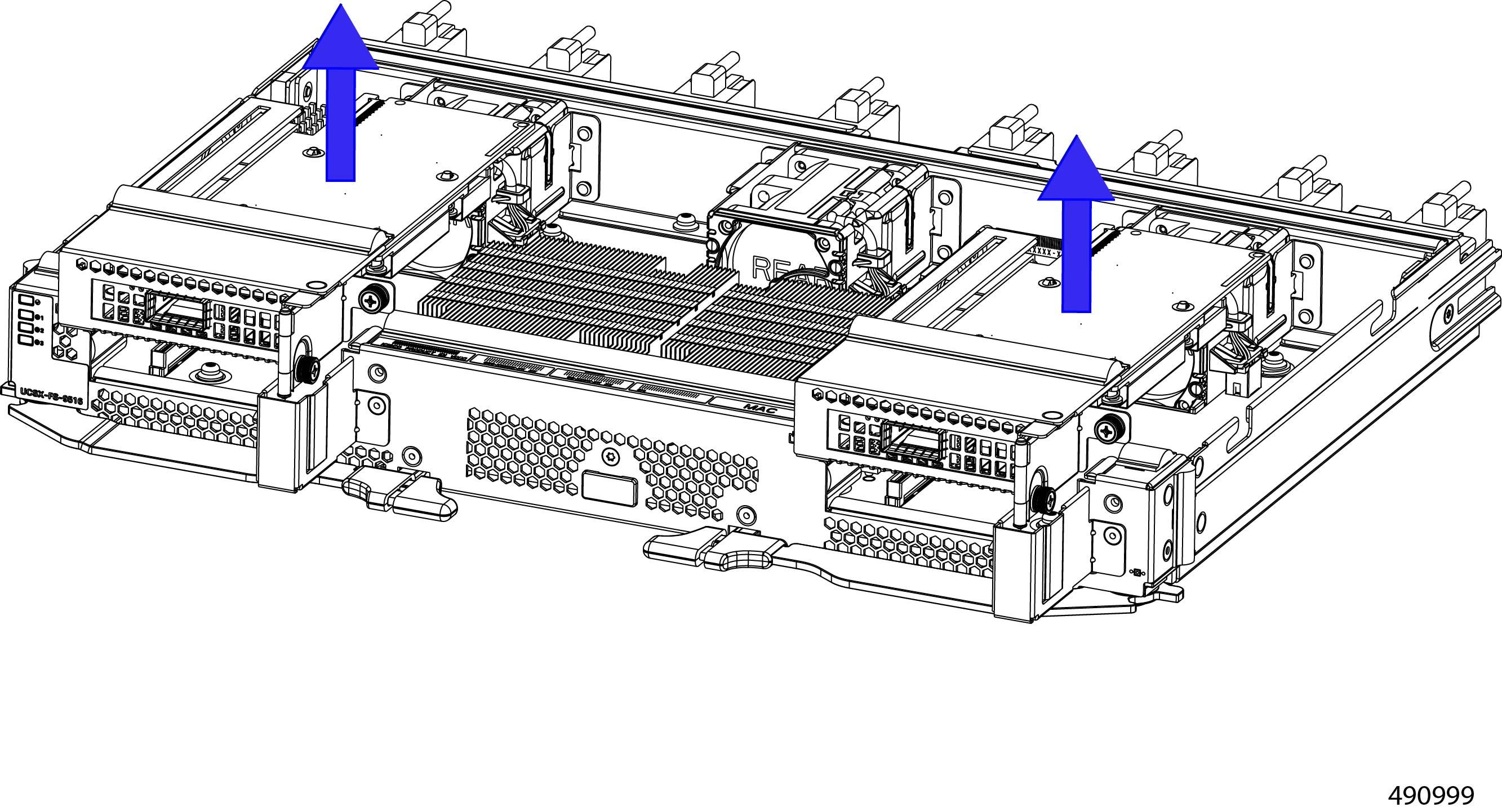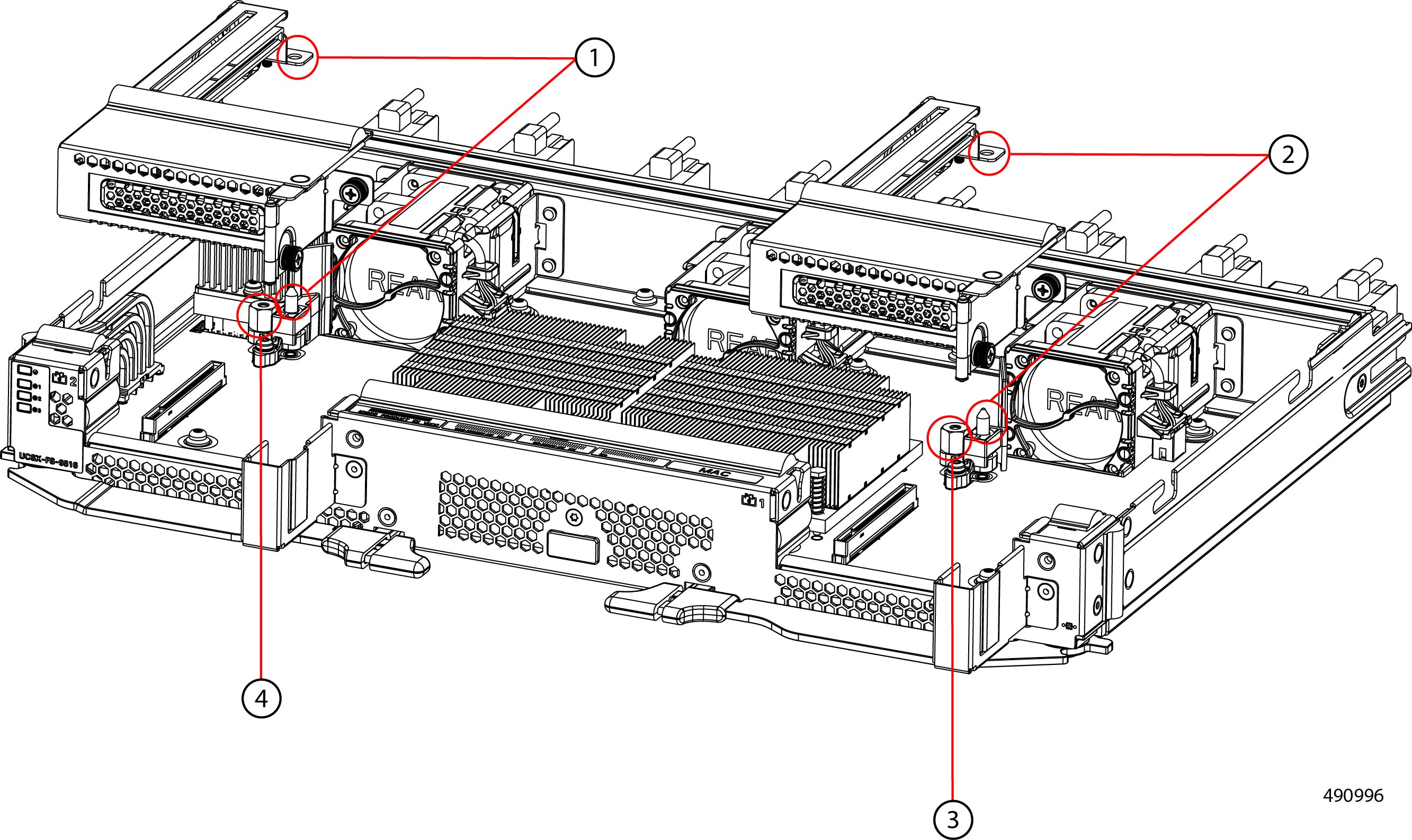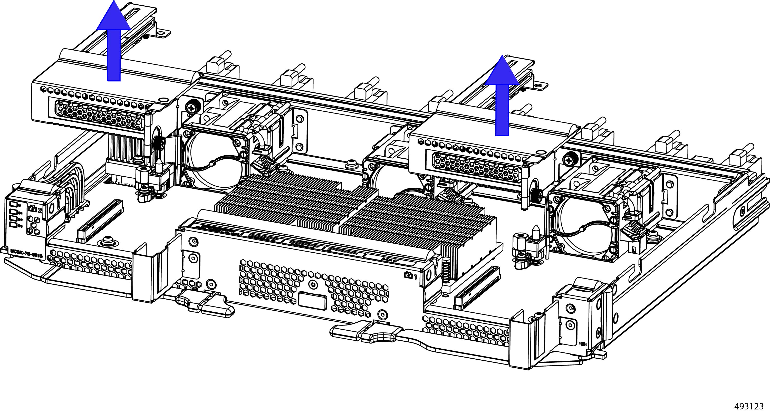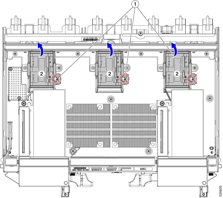 Fans (UCSX-RSFAN=), three, which are numbered 1 through 3 starting with the left fan |