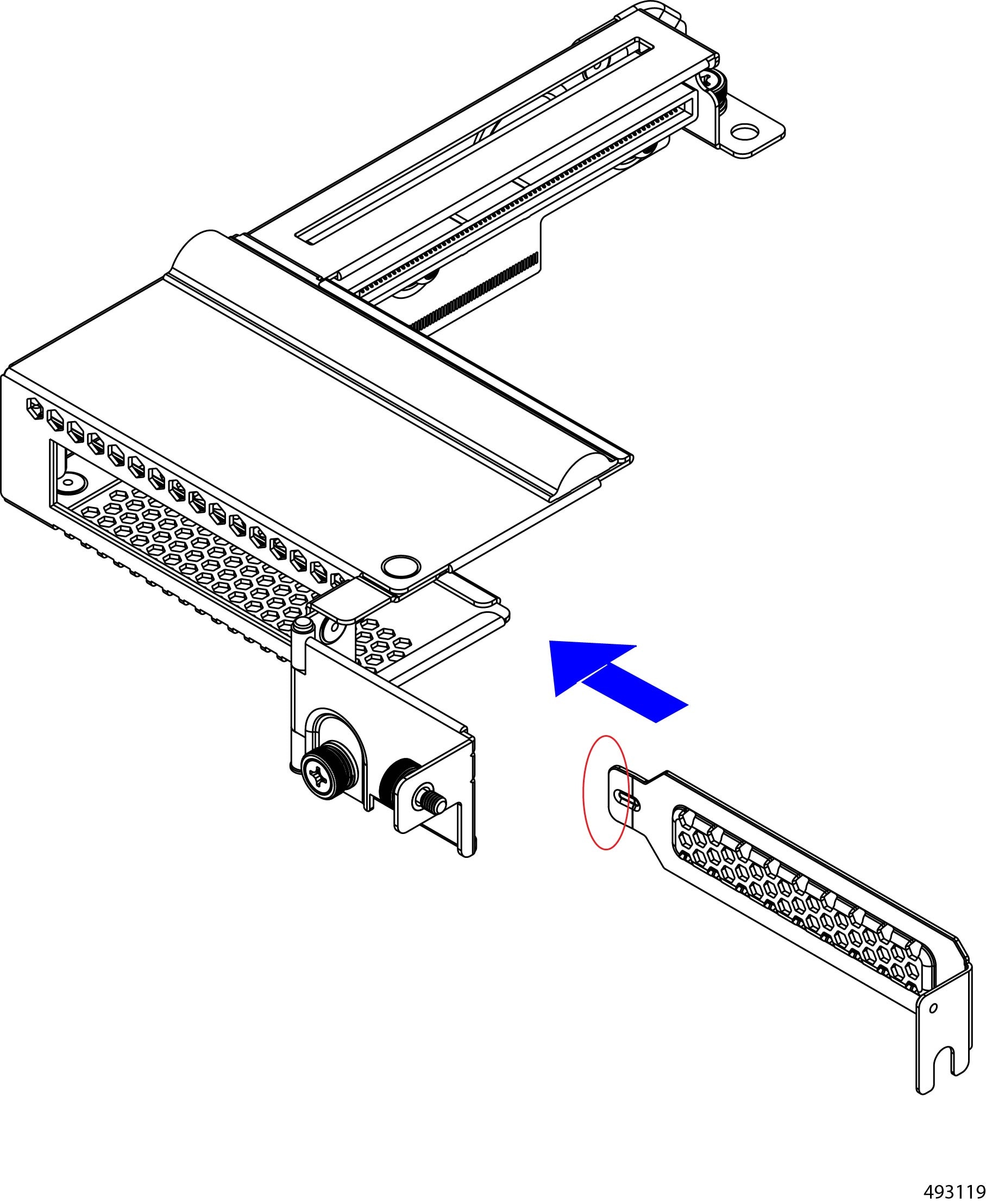 The side of the chassis has no handles because the chassis is heavy, and not intended to be lifted unless you are using a scissor lift or another type of mechanical lift device to bear the weight of the chassis. The right side of the chassis has the PSU Keying Bracket which enforces proper PSU orientation as well as proper PSU type.