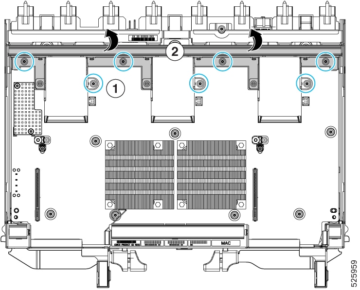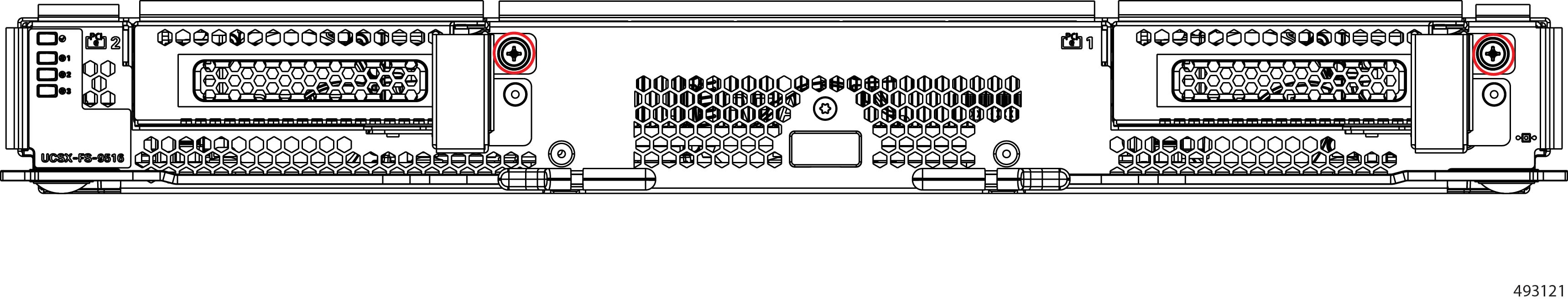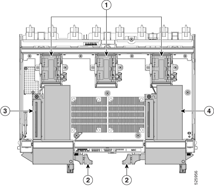 Fans (UCSX-RSFAN=), three, which are numbered 1 through 3 starting with the left fan. |
