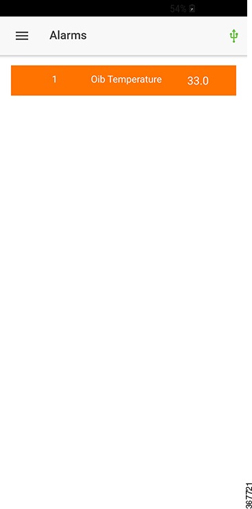 The following screen displays a sample alarm, which shows that the iNode temperature (OIB) is in minor alarm state (orange).