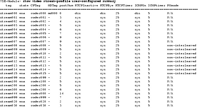 VSE-Module> show video stream-profile stream000