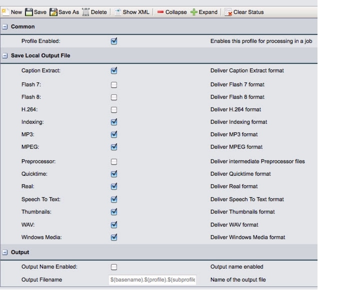 An Output Profile enables the profile and can prevent the Cisco MXE 3500 from storing transcoded files locally in an output folder. Follow these steps: