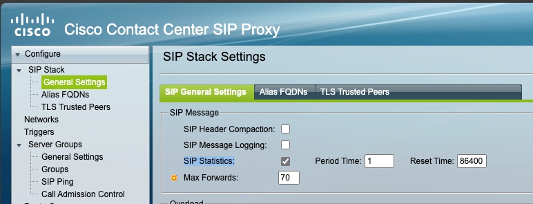 By default, Packet capture, sipmsg, pegcount are not enabled. You can enable them based on the usecase.