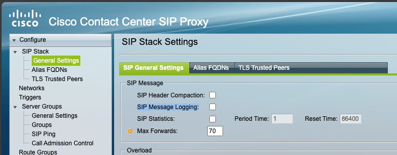 Debug: Verbose level of logging and defined only for running with minimal calls volume. It is not recommended to enable debug level of trace logging for any component in production systems. This can severely impact the performance of the CCCSP. This is designed for troubleshooting issues under test environments only. If you enable debug level with high call volume to observe the performance of the CCCSP, reboot is required.