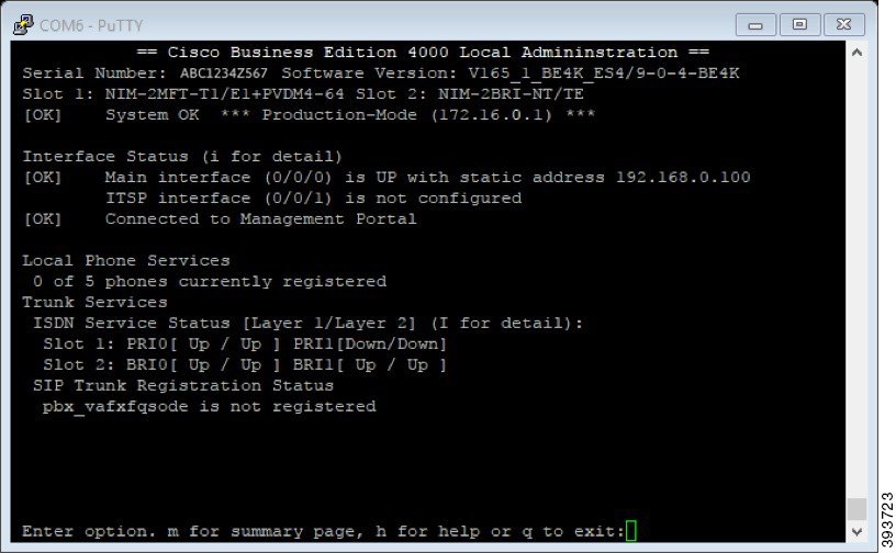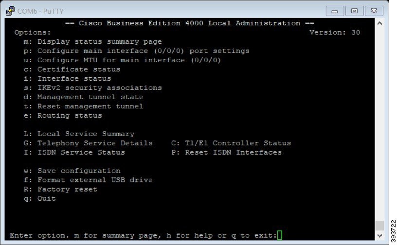 Local administration screen can be used only for monitoring and troubleshooting. You cannot configure a BE4000 site using the command line interface (CLI) unlike other Cisco IOS-based routers.