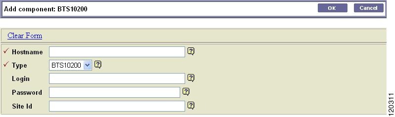 You can use Cisco EPOM forms to add, view, and change information on inventory components, domains, users, and groups, to specify report parameters, to search for devices, and so forth. The Add component form is an example: