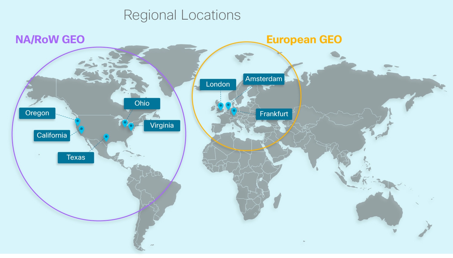 We've added a new European geography (GEO) with data centers in London, Frankfurt, and Amsterdam. The existing data centers in the United States of America continue to serve North America and the "Rest of World" (RoW).