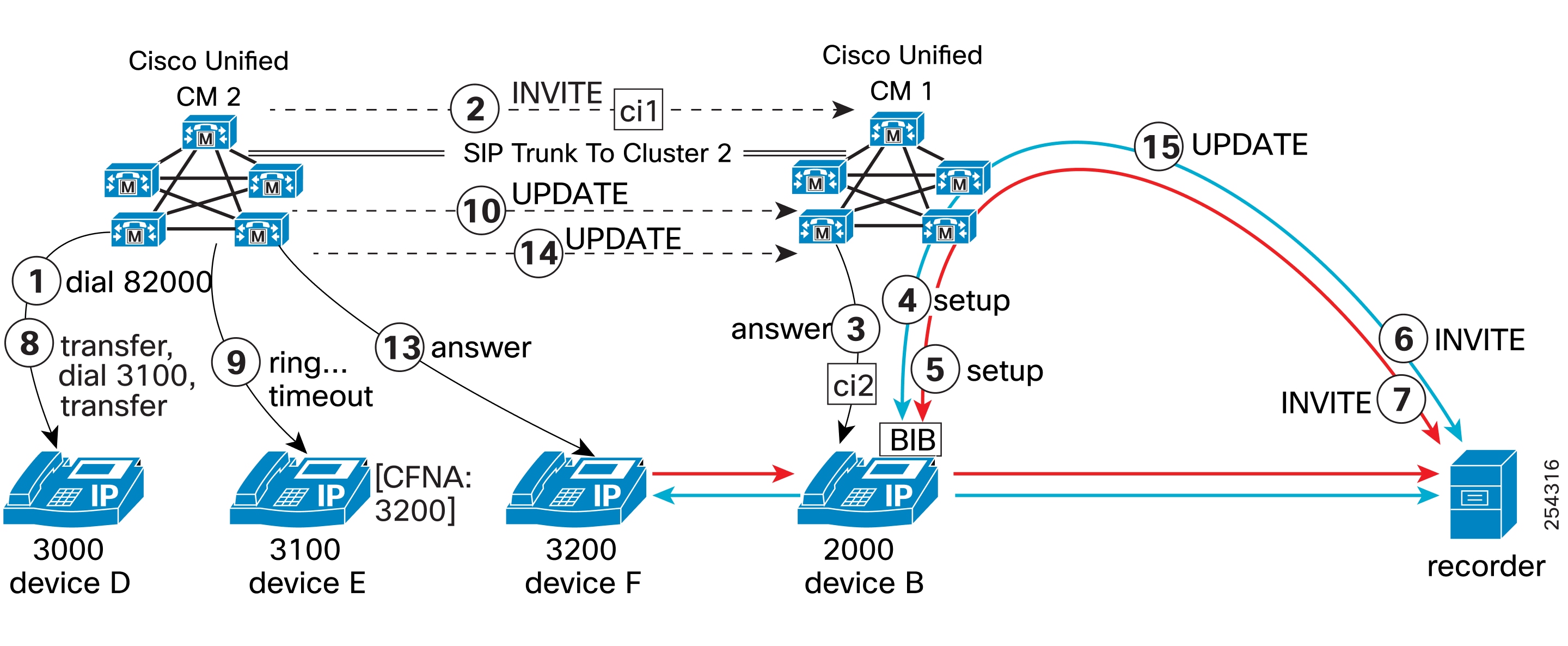- 4. Cisco Unified Communications Manager instructs the gateway to stop forking media to the recorder.