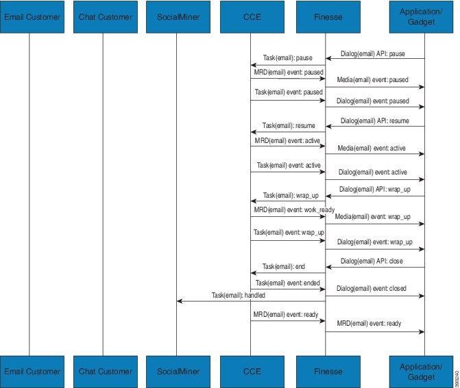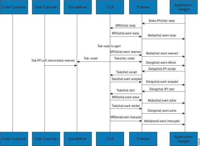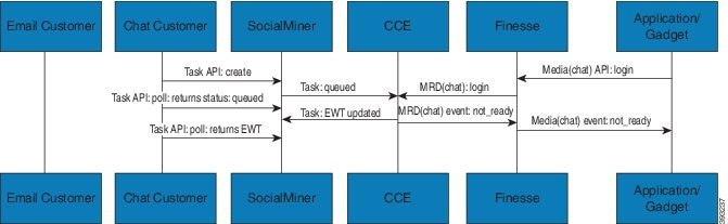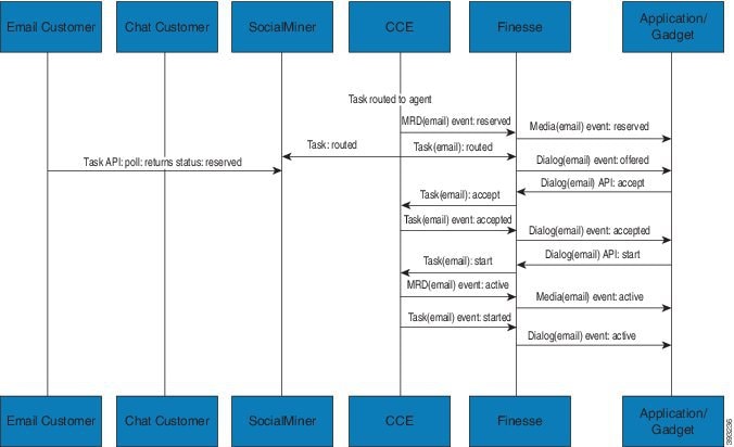Contact Center customers or partners can develop applications using SocialMiner and Finesse APIs in order to use Task Routing. The SocialMiner Task API enables applications to submit nonvoice task requests to CCE. The Finesse APIs enable agents to sign into different types of media and handle the tasks. Agents sign into and manage their state in each media independently.
