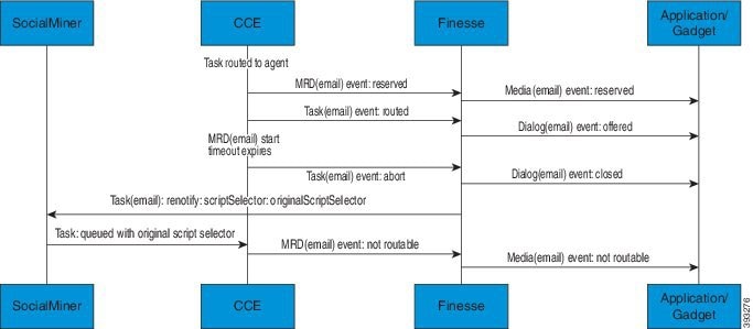 In RONA situations, in which agents do not accept tasks within the Start Timeout threshold for the MRD, Finesse automatically makes agents not routable. Finesse resubmits the tasks through for routing through SocialMiner. The application must make the agent routable in order for the agent to receive tasks again.