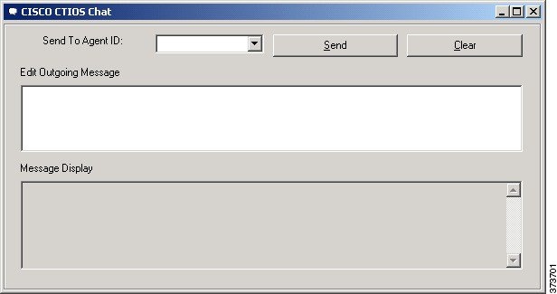 Chat — A supervisor can send a message to, or receive a chat message from, a member of the agent team. When the chat message arrives at the supervisor desktop, a CTI OS Chat window displays the message in the Message Display section of the window.