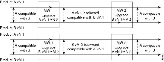 Release 5.0 release set are compatible with each other and will interoperate, as also the components in the Release 5.0(2) release set.The order of operations also needs to take into account the impact of backwards (in)compatibility as described later in this section, especially for Multistage System and Multisite Migration upgrades, where each stage (or maintenance window) only upgrades some of the components in the release set.