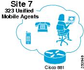 With Cisco Unified Mobile Agent (Unified Mobile Agent) functionality, 300 mobile agents "grouped" in Site7 (a virtual call center) use their regular PSTN or cell phones to accept and handle call center calls. The mobile agents in Site7 are part of a GSF Pandemic Response Team created to ensure call center operations are not disrupted when a major emergency event could close the formal call centers. The mobile agents are grouped in skill groups modeled after Site2 and Site3 GSF customer service teams, but are distributed across the country. These agents use a Cisco Enterprise Class Teleworker 881 VPN router at home with a cable modem for data connectivity and a GSF-supplied local POTS line to ensure voice quality for their calls.