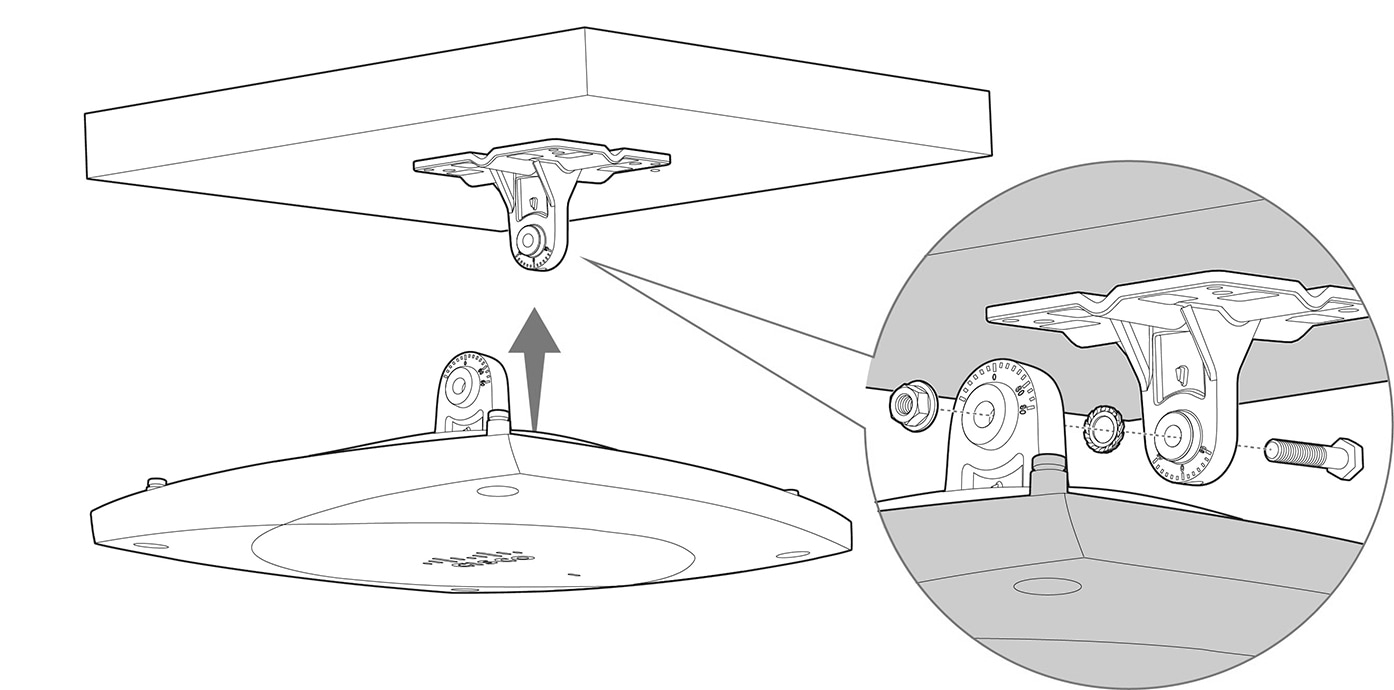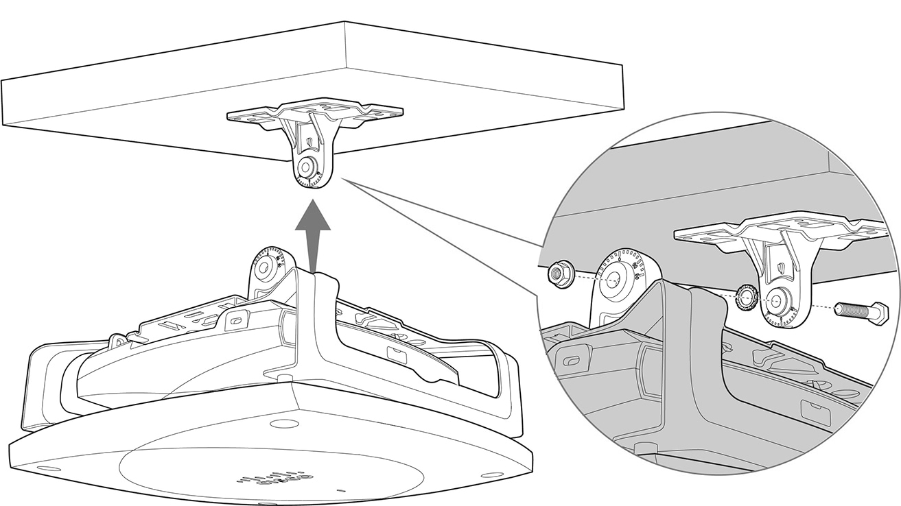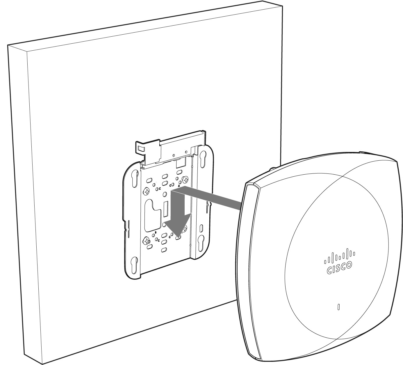 Default mounting brackets: Adjustable ceiling-rail clips AIR-AP-T-RAIL-R= and AIR-AP-BRACKET-1=